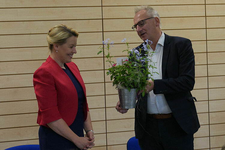 Der mehr als zweistündige Besuch fand seinen Ausklang mit einem Rundgang über den Campus und einer Besichtigung der neuen Räumlichkeiten der Check IN Berufsorientierung. Einiges hätte noch vertieft werden können, so dass sich die Gastgeber sehr über Frau Knacks Abschiedsworte „Ich komme sehr gerne wieder“ freuten.