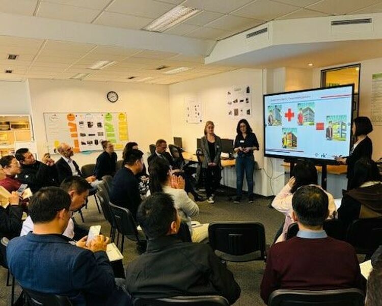 Am Montag, den 4. November, besuchte eine Delegation von 14 chinesischen Vertreterinnen aus Hochschulen und Schulen das Rotkreuz-Institut an seinem Standort in der Warschauer Straße in Berlin. Ziel des Besuchs war es, das deutsche System der dualen Ausbildung kennenzulernen und sich mit Expertinnen und Experten über die Rahmenbedingungen und Gestaltungsmöglichkeiten der Ausbildung auszutauschen. Besonders im Fokus standen dabei die Qualifizierung junger Menschen sowie Fragen zu den formalen und inhaltlichen Voraussetzungen, die dieses System erfolgreich machen.