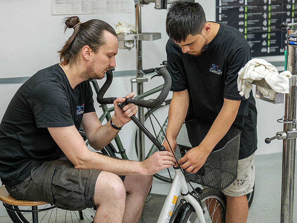 In unserer Fahrradwerkstatt Kladow lernen Sie, Fahrräder - auch E-Bikes - zu montieren, zu warten und zu reparieren. Sie lernen, eigene Fahrradkomponenten herzustellen, Kundenaufträge anzunehmen und abzurechnen, Lagerbestände zu verwalten sowie Jung und Alt fachkundig zu beraten. Die Ausbildung dauert zwei Jahre.