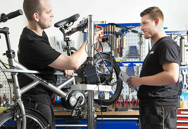 Der Anteil an elektronischen Systemen in und an Fahrrädern wächst. Elektromobilität wird immer beliebter. Zweiradmechatronikerinnen und -mechatroniker der Fachrichtung Fahrradtechnik können E-Bikes bauen, umrüsten, instand setzen und verkaufen.