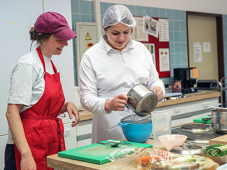 In unserer modernen Lehrküche, der hauseigenen Mensa und externen Betrieben lernen Sie, mit allen notwendigen Geräten umzugehen. Sie lernen, Gemüse, Fisch und Fleisch vorzubereiten und Saucen anzusetzen. Suppen, Salate und süße Gerichte bereiten Sie auch selbstständig zu. Neben professioneller Küchenpflege lernen Sie auch Hygiene- und Schutzvorschriften kennen und anzuwenden. Die Ausbildung dauert 3 Jahre.