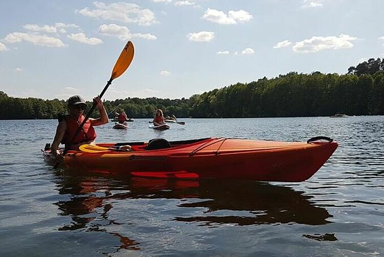 Wer lieber fest im Boot sitzt, kann einmal in der Woche begleitet auf der Havel Kajak fahren oder beim Stand Up Paddling stehend über das Wasser gleiten.