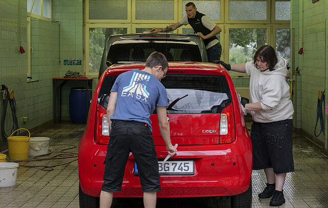 Schüler lackiert Auto