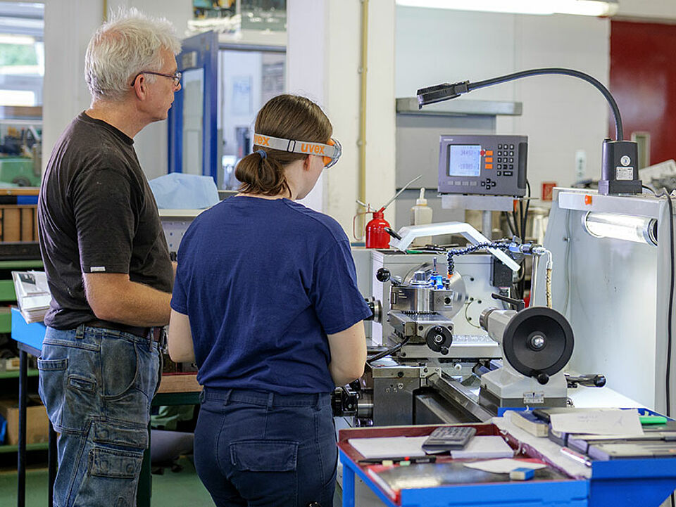 In unserer technisch gut ausgestatteten Werkstatt und externen Betrieben lernen Sie Metall zu bearbeiten, montieren und schweißen. Sie arbeiten mit Dreh- und Fräsmaschinen und lernen technisches Zeichnen. Sie konstruieren mit Inventor Professional, berechnen Drehzahlen und Vorschubgeschwindigkeiten, überprüfen Systeme und sichern deren Qualität. 3,5 Jahre dauert die Ausbildung.
